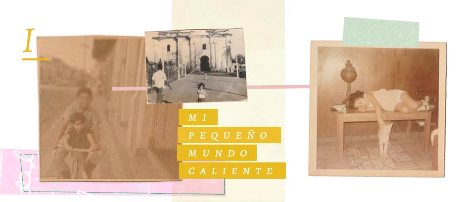 Me vi desde arriba -como dicen verse los que han estado al borde de la muerte- con un corte de pelo en forma de “guacalito”, al estilo indígena yanomami, llevando un vestido a rayas celeste con blanco, de piqué, con el cuello en forma de babero cuadrado de tira bordada. Todo me picaba por la tela. Estaba con mi hermano Jacinto en la puerta de la casa de mis tías cerca de la iglesia El Calvario de la vieja Managua de antes del terremoto del setenta y dos, con alboroto de gritos y música de fondo porque se celebraba la fiesta de boda de mi prima Melisa en la que dicen que llevé los anillos. Siguió en mi recuerdo otra escena de la misma película, en una acera de Managua, tomada de la mano de mi papá en espera de mi madre que llegaba de Costa Rica en un autobús de la empresa Tica Bus.